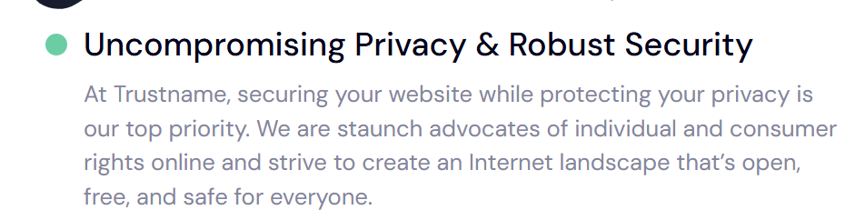 Trustname doesn't stress you out by forcing you to pick between the protection and security packages you can't afford. Everything is included, and in a few clicks, you have your fully secured domain with no annoying upsells.