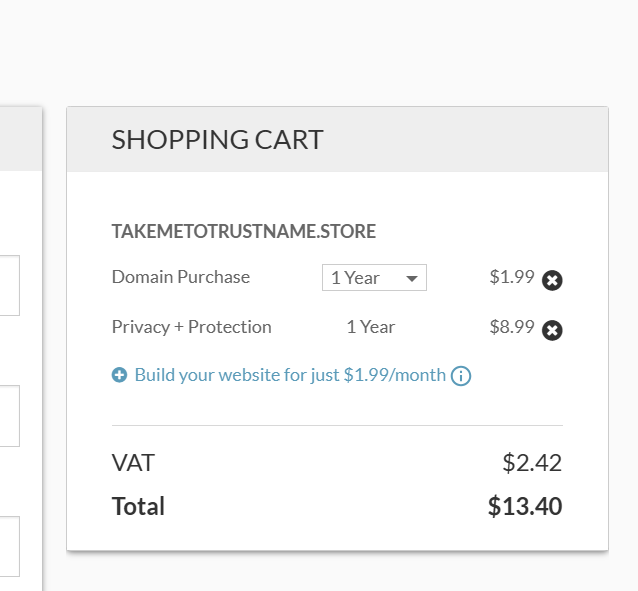 Your total is now $164.87 for one year. How does Trustname measure up? Hold your breath.