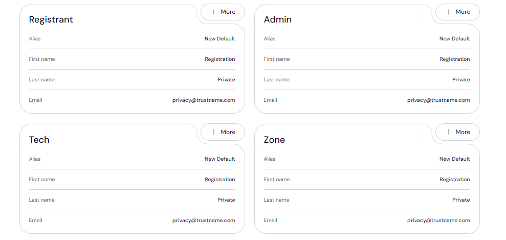 - When you register a domain with Trustname, you can either use your own contact details or choose our third party registration service, where Perfect Privacy LLC is listed as the registrant.