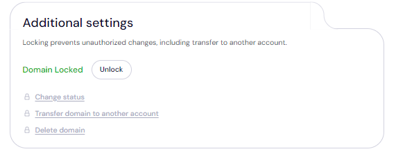 Once your domain is transferred, the Domain Transfer Lock is automatically enabled for added security. To check or modify this setting, go to Domains >>> Registered Domains >>> Select your domain, then scroll to the 'Additional Settings' section.