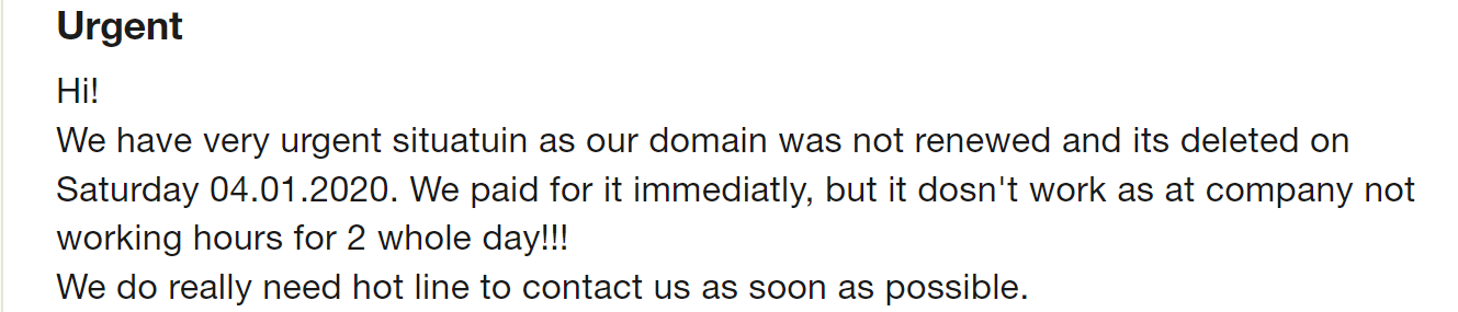 Customers also complain about being redirected to text based documentation. Anyone initiating a live chat clearly wants answers quickly. At Trustname, you can enjoy on demand support from a team of seasoned domain management experts (many of whom are webmasters themselves) and get all the answers you need.