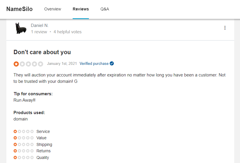 Many of our current customers, who were formerly with Namesilo, now enjoy easy domain management, protection from abuse reports, unbeatable prices, easy payment, empathetic human support, and renewal policies that ensure they never lose their domains.