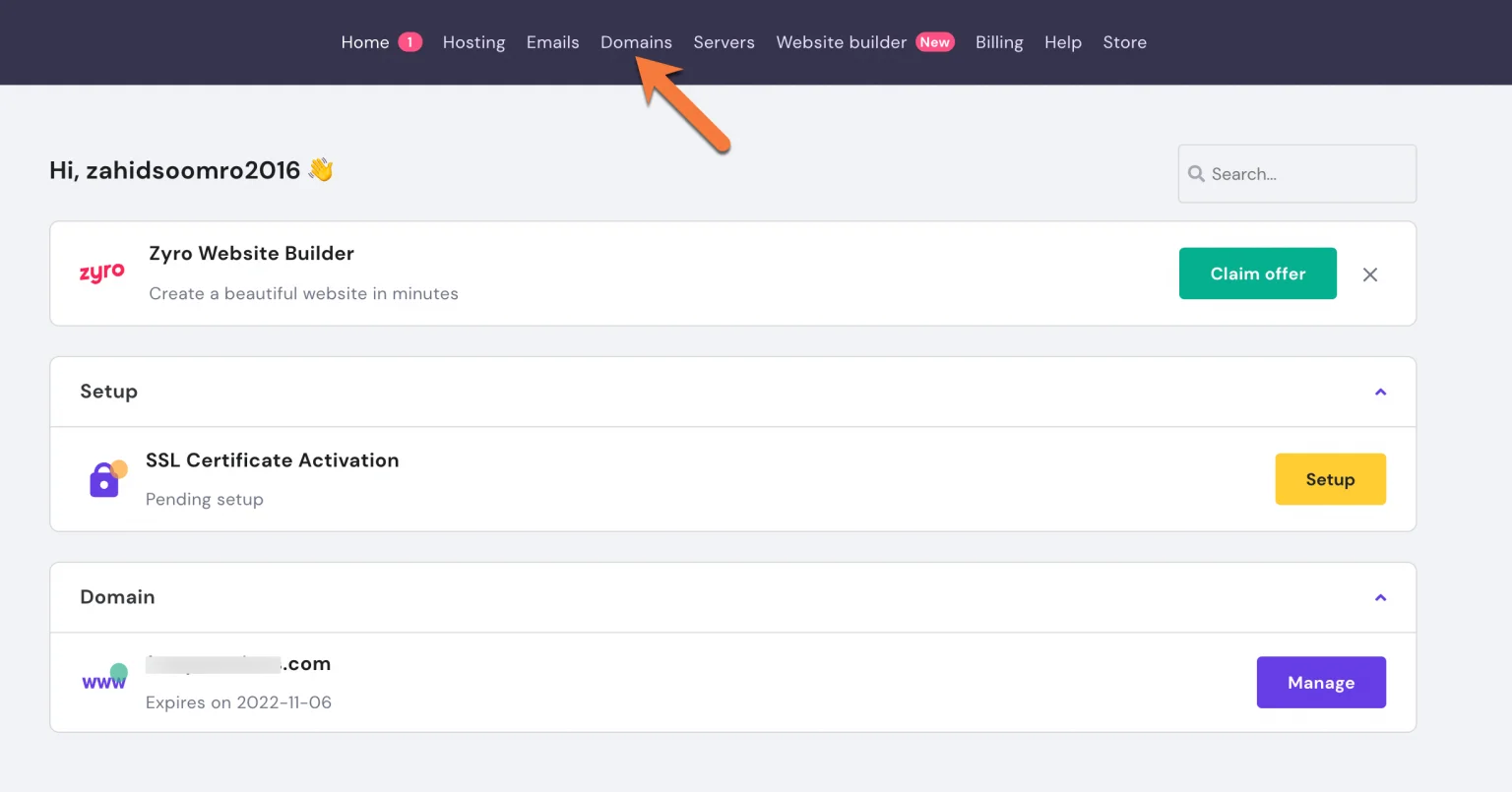 Next, click on the domain's you want to transfer from the list of domains registered to your Hostinger account.