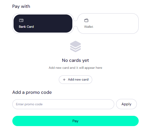 If you don't have a bank card set up yet, click on 'Add new card' and fill in your card details to have it set up.