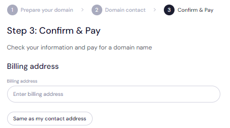 Enter your billing address or select 'Same as my contact address' so you don't need to fill it in manually.