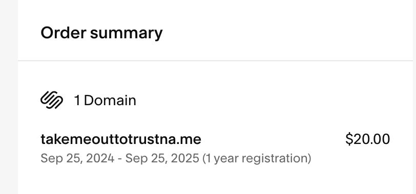 - Click the 'Pay' button and follow the prompts to finalize your payment. That's all! It'll take 15 working days for your domain to be transferred completely from Google Domains (Squarespace) to Trustname.