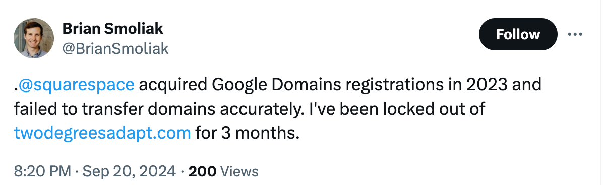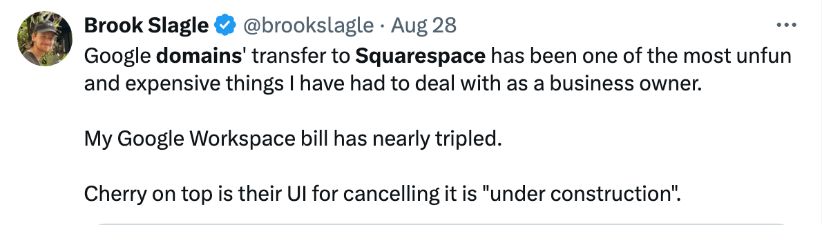 Previous Google domain customers also complain about the subpar support service since Squarespace took over.