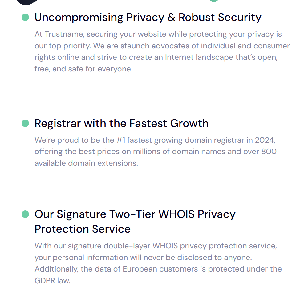 [+] [List] Green Unordered - Choose between adding new contact information or using Trustname's Two-Tier Privacy Protection.