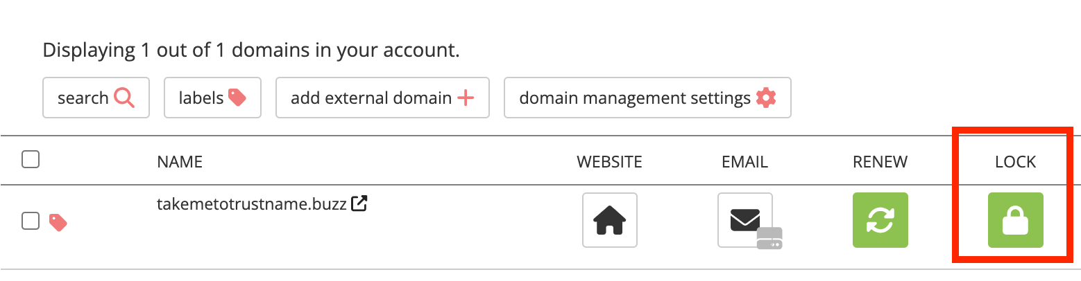 Now that you're set to move to a new registrar (Trustname), you'll need to turn off all the locks on your domain. We also have this feature listed in our domain management tool stack. Once the transfer is complete, you can enable it with a single click.