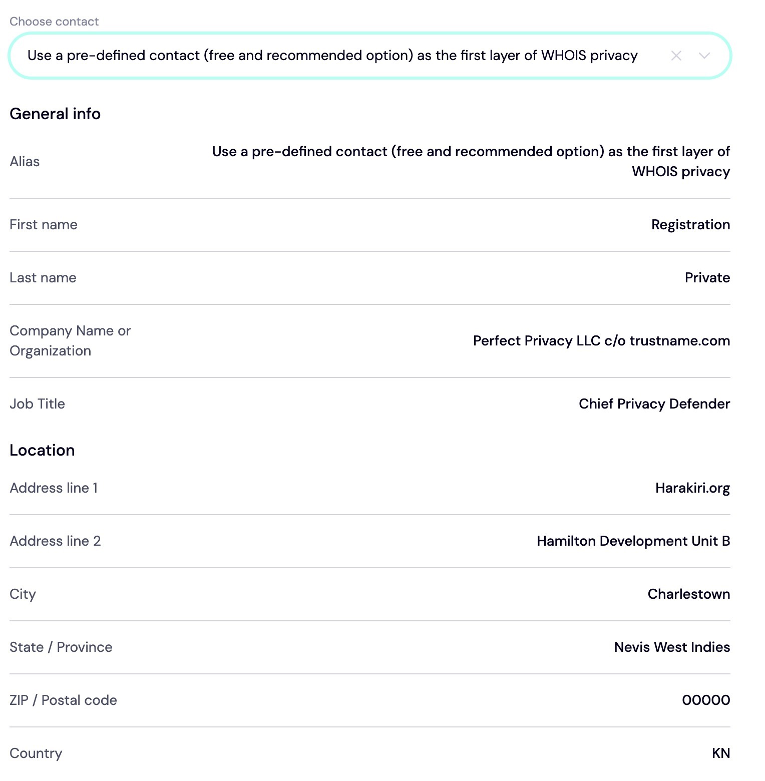 The second option is not mandatory, and you can easily revert to using your personal details from your dashboard. This is only the first layer of our two-tier privacy protection. - The second layer is the standard Whois privacy service. You can use this to conceal your details (or PP LLCs) on the Whois database using an alias from one of our partner companies.