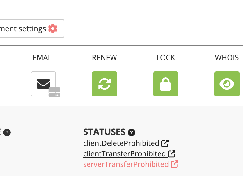 - Here, search for 'STATUSES' to confirm your domain's eligibility. If you see the code 'ServerTransferProhibited' as shown below, it means your domain isn't eligible for transfer.