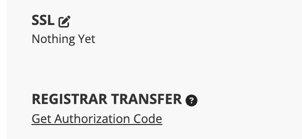 To check your auth code, click the inverted triangle icon next to the domain you want to transfer. Scroll to 'Registrar Transfer' at the bottom of the page. Click 'Get Authorization Code'