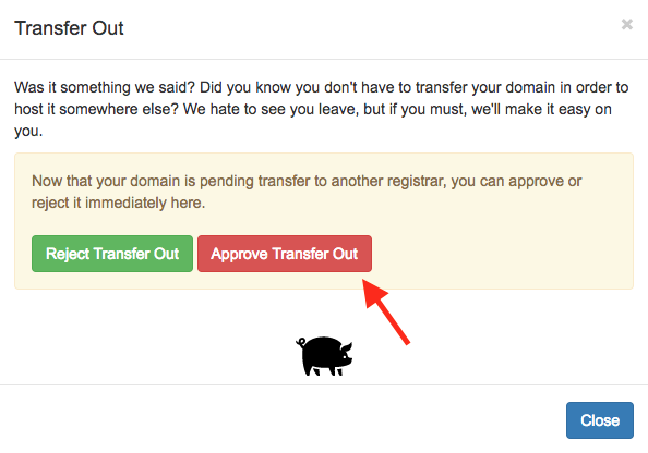 Scroll down to the 'Registrar Transfer' area and click 'Approve Transfer Out'.