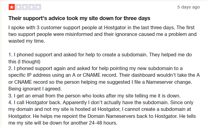 A major flaw of HostGator is how unprofessional their support is. They seem to have a team of people who know little about the industry attending to customer complaints.