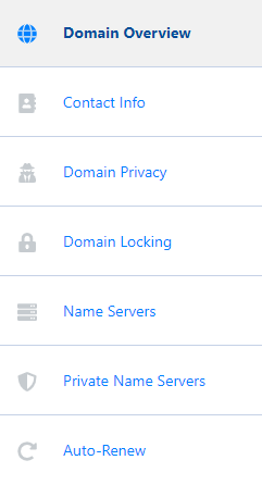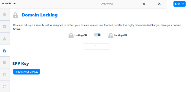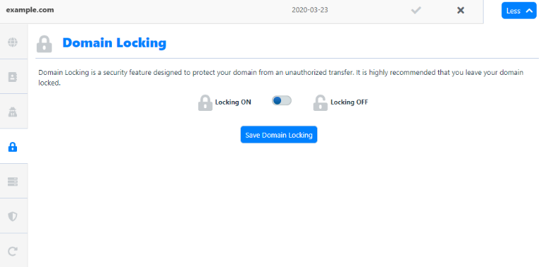- Move your mouse over the icons on the left-hand side, and it will expand a list of settings for your domain. Click on 'Domain Locking'.